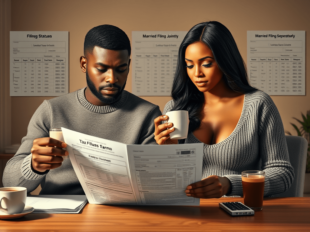 If two taxpayers are legally married on December 31st according to the rules above, they have only two possible filing statuses, Married Filing Jointly (MFJ) and Married Filing Separately (MFS). In most cases those who filed MFJ will have the lowest tax liability.
