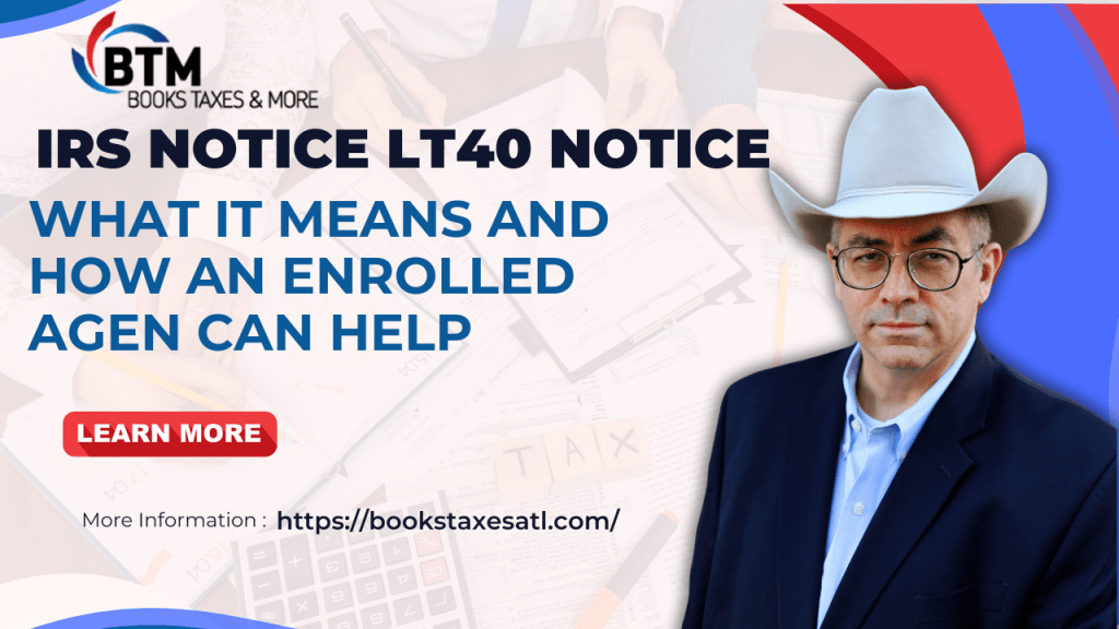 An Enrolled Agent (EA) is a tax professional authorized by the U.S. Department of the Treasury to represent taxpayers before the IRS. In the event of receiving an LT40 Notice, Steve can provide invaluable assistance by interpreting the notice, explaining the taxpayer’s rights and responsibilities, and formulating the best course of action. He can communicate directly with the IRS, negotiate on behalf of the taxpayer, and help arrange payment plans or dispute resolutions, ensuring the issue is handled promptly and correctly.