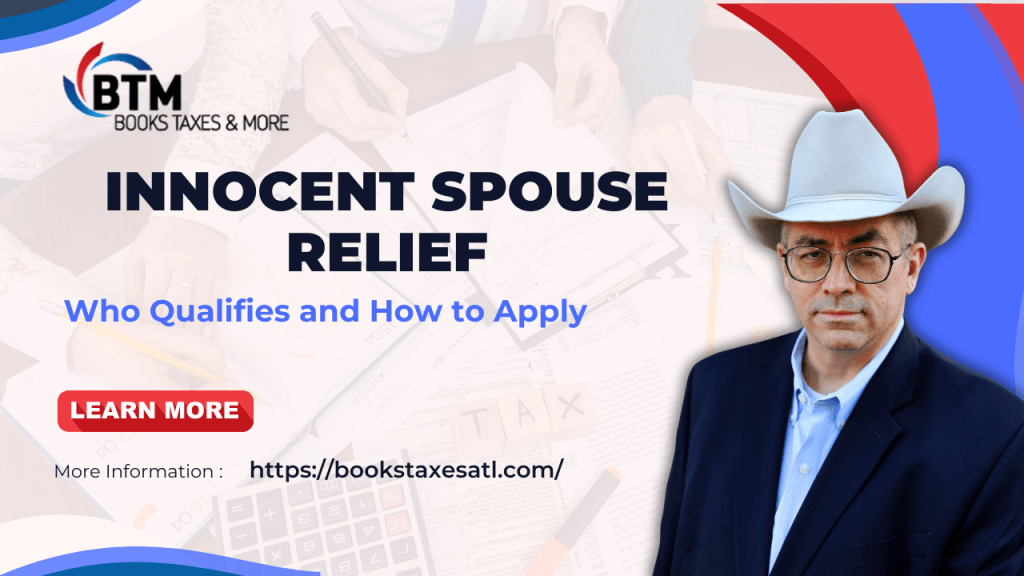 When the IRS comes after you for taxes caused by someone else’s lies, omissions, or mistakes, it feels crushing. Your wages, your bank account, and your peace of mind can be stripped away. But there is a lifeline: Innocent Spouse Relief. And with Steve Perry, EA, you can have someone who won’t flinch standing between you and the IRS. Call (678) 717-9818 or email steve@bookstaxesatl.com today before a mistake that isn’t yours ruins your financial future.