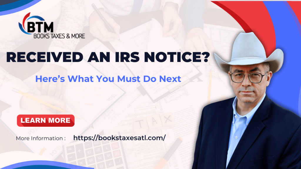 If the IRS wrote to you, act today. Contact Steve Perry, EA at Books, Taxes & More, and let him fight for your financial future. Message him now on LinkedIn: www.linkedin.com/in/steveperrybtm or call (678) 717-9818.