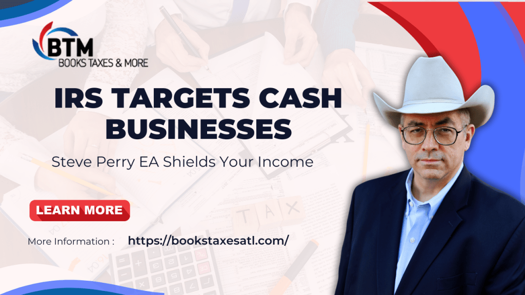 If the IRS is targeting your business, every day you wait digs the hole deeper. Call Steve Perry EA at (678) 717-9818 or email him directly at steve@bookstaxesatl.com.